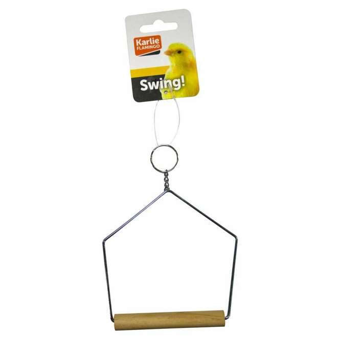 Trapeze swing for birds made of metal with wooden perch.
