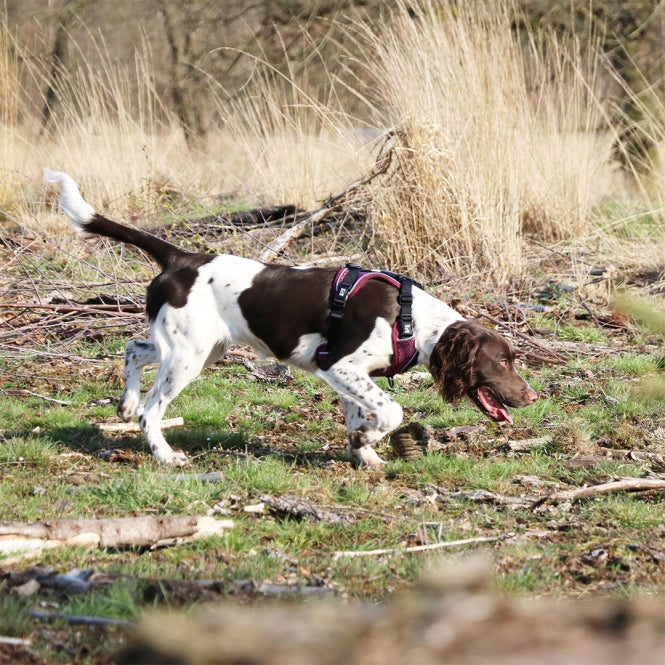 Stay close to your dog on the go with the EXPLOR Ultimate Fit No-Pull Harness, a well-designed, ergonomic dog harness that's ideal for a daily city walk or a big outdoor adventure. Your dog enjoys optimal freedom of movement because the pressure caused by pulling on the leash is evenly distributed across the chest, protecting vital organs in the neck. The harness has two stainless steel attachment rings: one on the back, suitable for calm or older dogs who are easy to control, and a reinforced D-ring in the chest area to control dogs who pull on the leash. The EXPLOR Ultimate Fit No-Pull Harness is adjustable around the neck and chest, which, combined with the durable materials, makes it suitable for almost all dogs. The buckles are located around the middle, so the dog does not have to lift a leg(s) when the harness is put on. To protect the dog's fur and skin from chafing, most of the straps and buckles are covered with soft, breathable materials. In addition, the lightweight but high-quality fabrics used for both the inside and outside dry quickly, which is very convenient if your dog likes to go swimming. To prevent your dog from getting caught on branches while running free, the harness has no loops or protruding parts. The EXPLOR Ultimate Fit also takes your dog's safety in traffic into account. The reflective piping is placed in the right places and ensures optimal visibility in traffic. There is also a special inner pocket for an ID tag in the chest area of the harness, so that the tag remains easily accessible and undamaged. Get out there and EXPLORE!