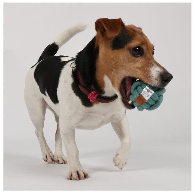 The Skip dog toy is a knotted ball made from 100% cotton and is therefore very robust. Natural cotton cords are popular with dogs as chewing material and offer them hours of fun. Chewing on this material also contributes to healthy teeth and gums.