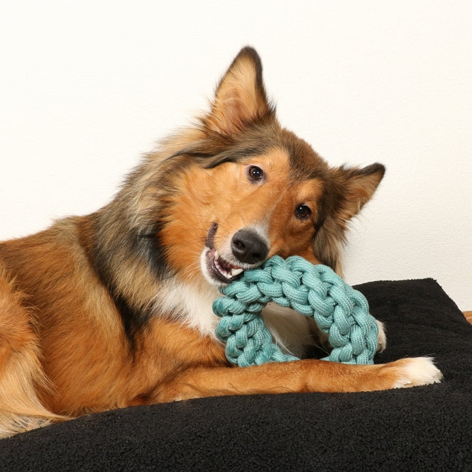 The Ben dog toy is a sturdy knotted ring made from 100% cotton and is therefore very durable. Natural cotton cords are popular with dogs as chewing material and offer them hours of fun. Chewing on this material also contributes to healthy teeth and gums.