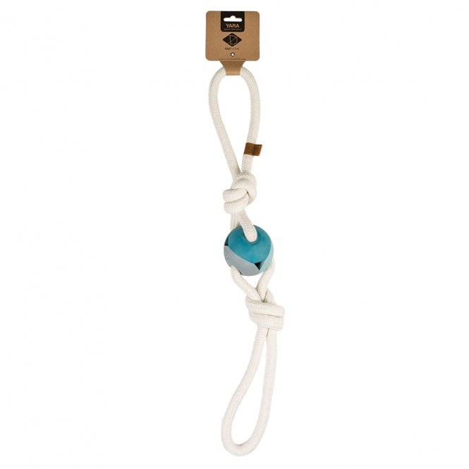 The D&D dog toy Yara is a dog toy made of robust natural rubber in trendy colors. It is also equipped with a cotton rope. The cotton rope is a popular chewing material for dogs and also cares for teeth and gums. This toy is ideal for fetch and tug-of-war games.