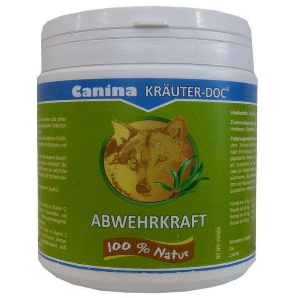 Canina Kräuter-DOC® Atemwege is a finely ground and therefore optimally usable herbal mixture that is fed to support the respiratory tract. The herbs provide important phytonutrients that may be missing from the daily diet. They supply the body with vitamins, minerals, amino acids and secondary plant substances. The specially coordinated herbs support the clearance of the upper respiratory tract. Your dog's well-being is promoted. Canina Kräuter-DOC® Atemwege contains no chemical additives - 100% natural! Contents: 150g Composition: Anise, gingko, thyme, licorice root, pansy, eucalyptus, marshmallow root, ingredients: crude protein 14.4%, crude fiber 15.8%, crude ash 12.0%, crude fat 10.4% Feeding recommendation per animal and day: As a treatment over 2 months, mix 1 teaspoon per 10 kg with the food, maximum 4 teaspoons (1 teaspoon = approx. 5 g). Repeat the treatment after a 6-month break. Moisten the dry food before mixing it in or let the herbal mixture steep briefly in hot water and then mix it into the food. If several KRÄUTER-DOC products are used at the same time, the mixtures should be used alternately on a daily basis or the treatments should be carried out one after the other. Discontinue during pregnancy!