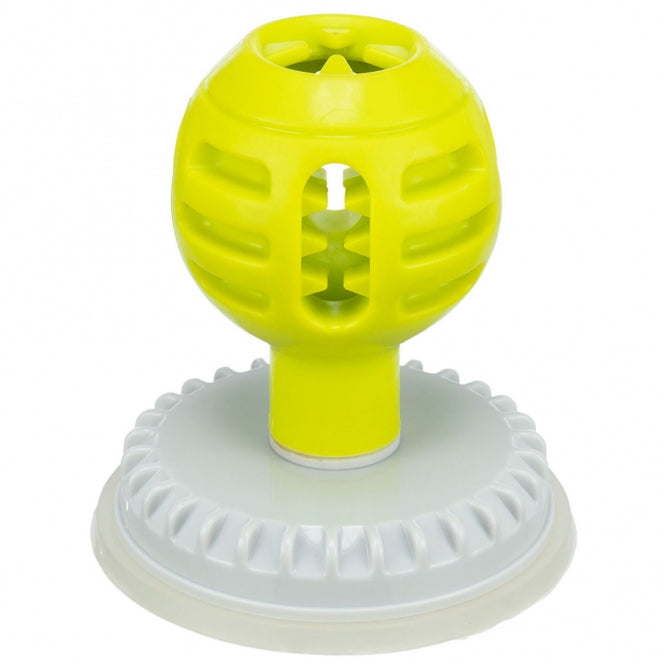 Is your dog restless or stressed in unfamiliar situations? The Lick'n'Snack Ball can help: You can fill the toy with various treats that your four-legged friend can earn by licking. This process ensures that he is distracted and his stress level sinks. The ball offers space inside for larger snacks, while the grooves on the sides are ideal for liver sausage or other pastes.
