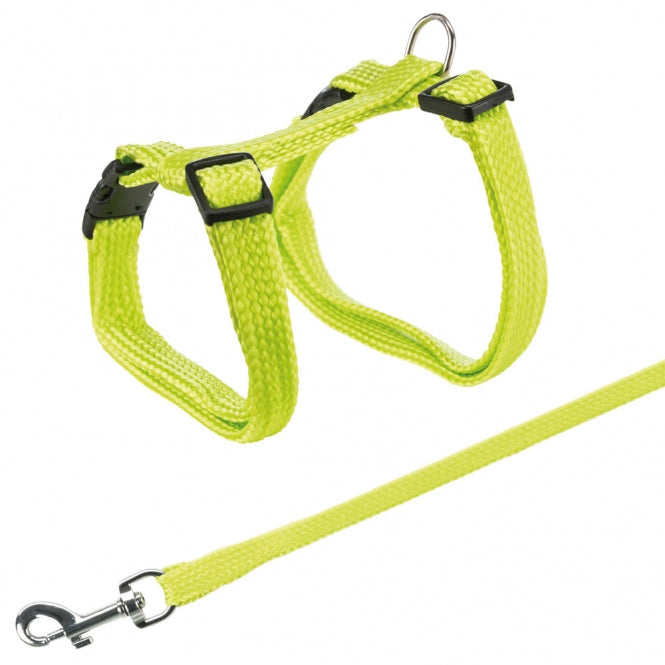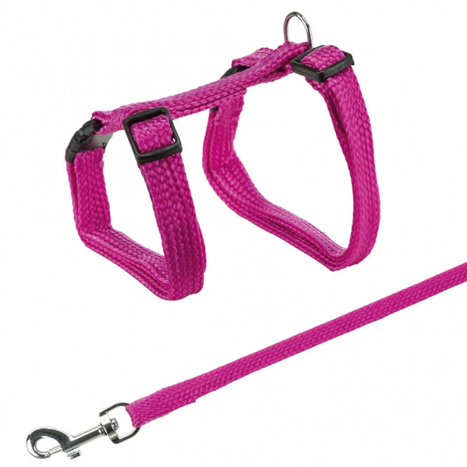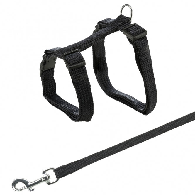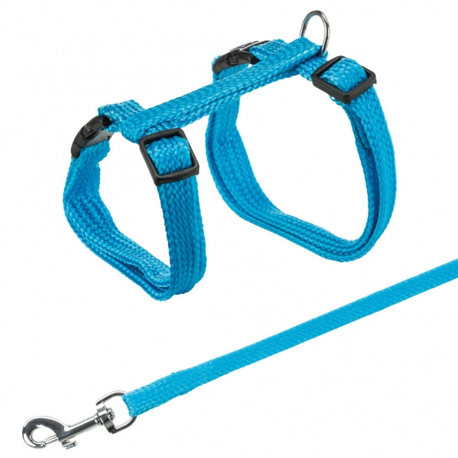 The cat harness is made of sturdy nylon and is infinitely adjustable. With metal buckle.