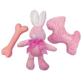 This cute puppy playset consists of 2 cute stuffed animals and a rubber bone and is packed in a practical basket. Also ideal as a gift idea!