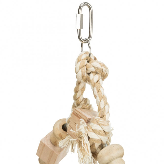 This arched swing brings a very special swinging fun into the cage for your feathered friend. The cotton rope and the wooden blocks are a welcome change. The hook makes it very easy to mount it on the cage bars.