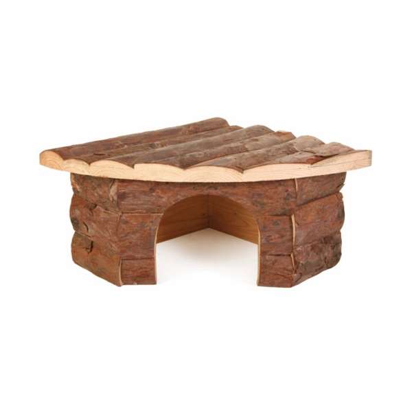 The Jesper corner house made of natural wood can be set up in any cage to save space. The flat roof offers space for jumping or climbing up. This size is ideal for dwarf hamsters, mice and similarly sized animals.