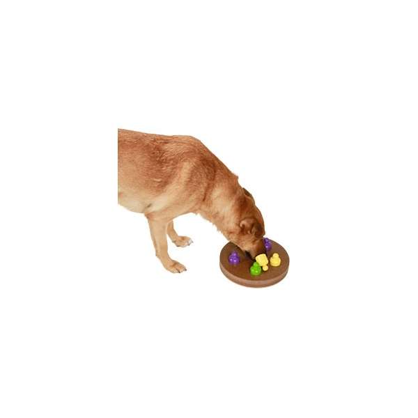 2 games in one! Shell game and roulette. In these board games, snacks are placed in openings that are then covered with shells or the rotating plate. The dog has to lift the shells or turn the plate with its paw or snout to get to the snacks. A great game for dogs that are sick, have had surgery or are older. Intensive play also promotes the bond between humans and dogs.