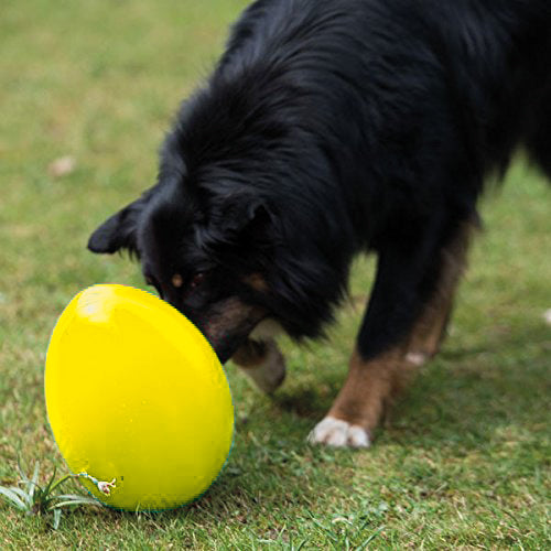 The PROCYON toy egg is similar in principle to a Treibball. It is extra large so that the dog does not carry it in its mouth, but rather pushes or rolls it.