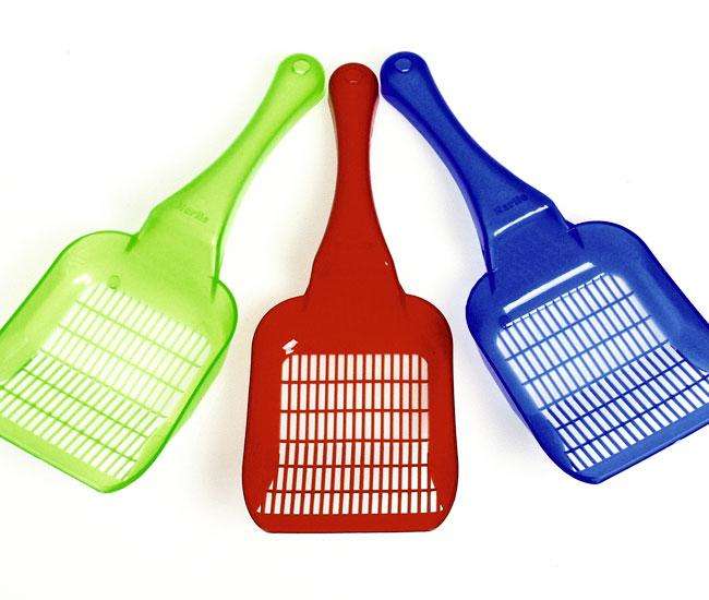 Grober Streulöffel aus Kunststoff zum Reinigen des Katzenklos.