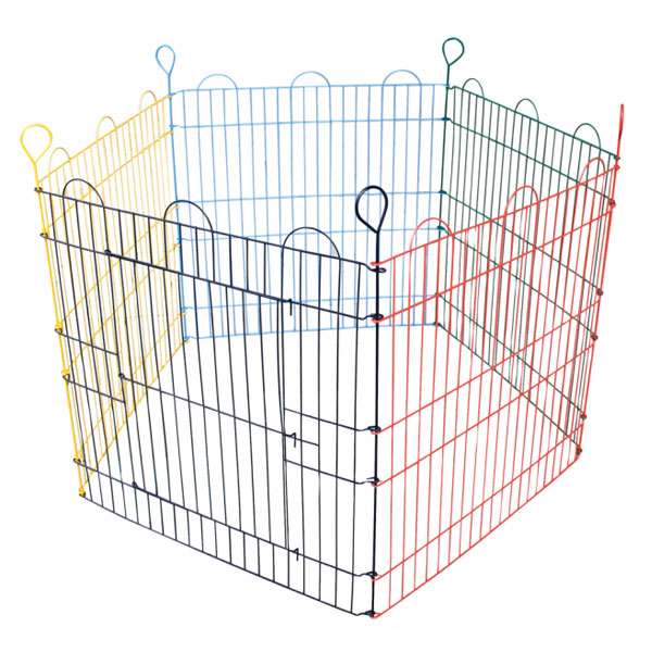 Mit diesem Freigehege aus bunten Metallelementen ist das ganz einfach! Das Gehege mit einer Höhe von ca. 60 cm wird einfach auf der Wiese aufgestellt und schon kann das Vergnügen beginnen. Ein Element ist mit einer Tür versehen, durch die die Tiere ganz einfach hineingesetzt werden können. Das Gehege eignet sich sowohl für den Outdoor- als auch für den Indoor-Einsatz.