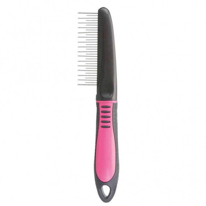 Der Fell-Entwirrer Kombi-Kamm eignet sich für Katzen mit Langhaar. Mit seinen abgerundeten Zinken ist er das optimale Hilfsmittel zur schonenden Pflege des Deckhaars und der Unterwolle. Der Kunststoffgriff mit rutschfester Gummieinlage sorgt dabei für einen sicheren Halt in der Hand.