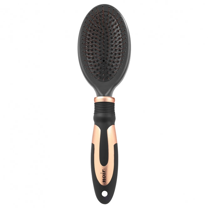 Die Pflegebürste von Noir mit Edelstahlborsten und Schutzspitzen ist für eine schonende Fellpflege geeignet. Die Bürste reinigt das Fell und massiert die Haut für eine bessere Durchblutung. Der ergonomische Griff ist aus robustem ABS-Kunststoff für mehr Komfort für das Herrchen. Die Bürste ist für alle Katzen- und Hunderassen geeignet.