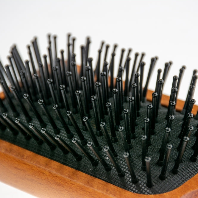 - Nadelbürste mit Schutzspitzen zum Entfernen loser Haare und zum Massieren der Haut