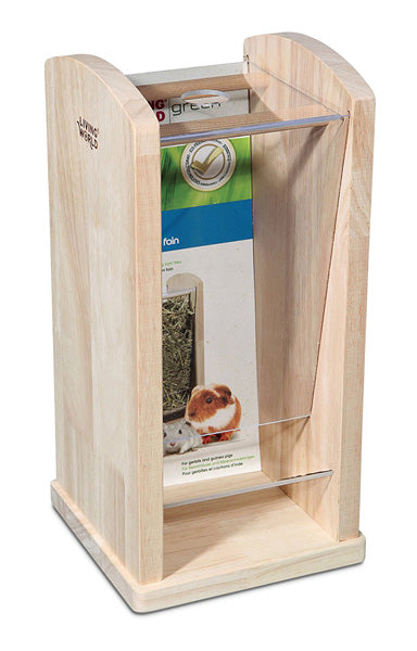 Die LivingWorld Green Heuraufe besteht aus umweltfreundlichem Gummibaumholz und Plexiglasscheiben und bietet Ihrem Tier einen optimalen Zugang zu frischem Heu, egal ob im Käfig, im Terrarium oder auch im Freilauf. Die Heuraufe kann an jedem beliebigen Ort aufgestellt werden. Es ist keine Befestigung an einem Käfiggitter mehr notwendig. So kann die Heuraufe Ihres Tieres z.B. ohne Probleme von einem Heim ins andere gehoben werden oder beim Reinigen des Käfigs einfach beiseite gestellt werden. Die Aufbewahrungskammer ist geschlossen, so dass Ihr Tier nicht im Heu liegen und es so verschmutzen kann. Außerdem wird ein verstreuen des Heus damit reduziert und Heuallergien somit minimiert.