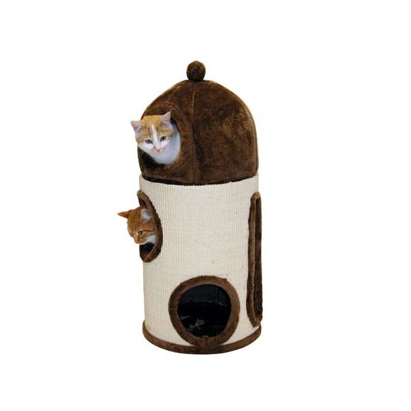 Von außen ist der komplette untere Bereich mit Sisal bezogen und bietet so eine extra große Kratzfläche zum Krallenwetzen. Neben den Eingängen zu den Höhlen befindet sich noch ein Schlitz, der als Sichtfenster für die beiden unteren Etagen genutzt werden kann, so hat Ihre Samtpfote immer alles im Blick. Sowohl die Höhleneingänge als auch dieses Sichtfenster sind mit einem Plüschrand bestückt.