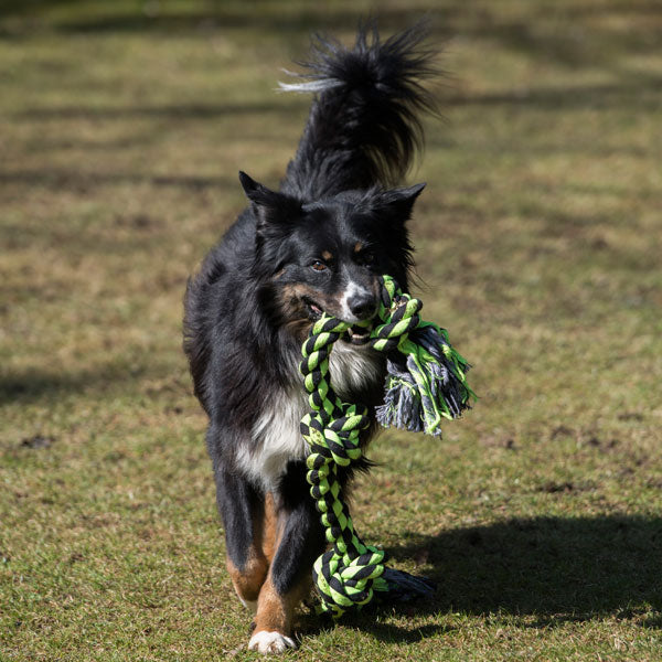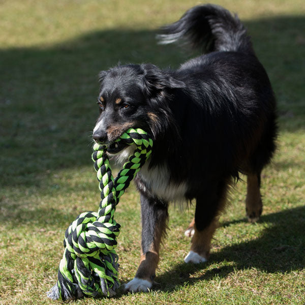 Das XXL-Kauseil ist ein vielseitig einsetzbares Spielzeug für Ihren Vierbeiner. Es eignet sich perfekt für Zerrspiele, zum Apportieren oder als Kauspielzeug mit dem praktischen Effekt, dass die Zähne dabei gleich gereinigt werden.